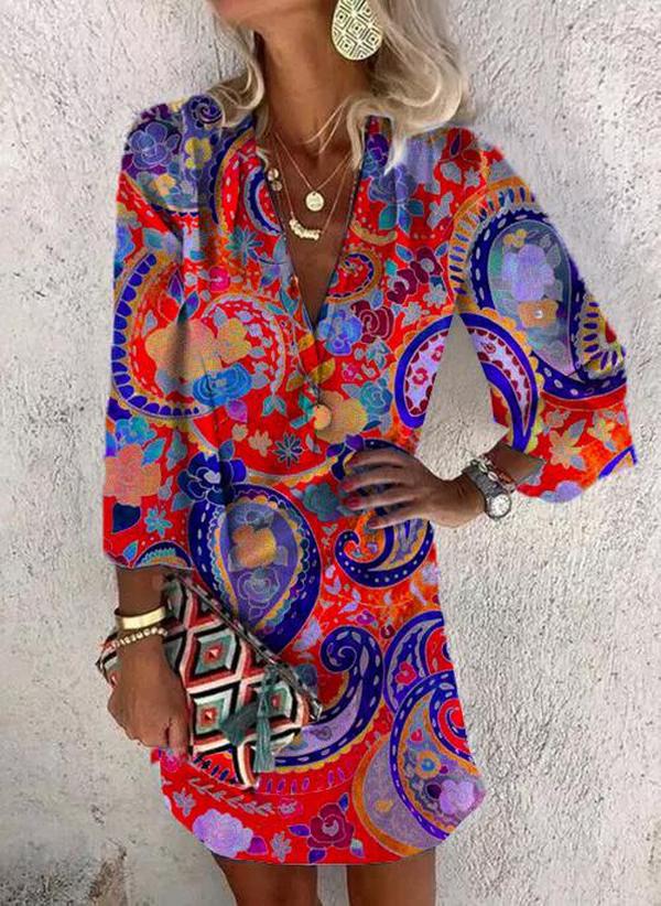 Showy Print 3/4 Sleeve Mini Dress