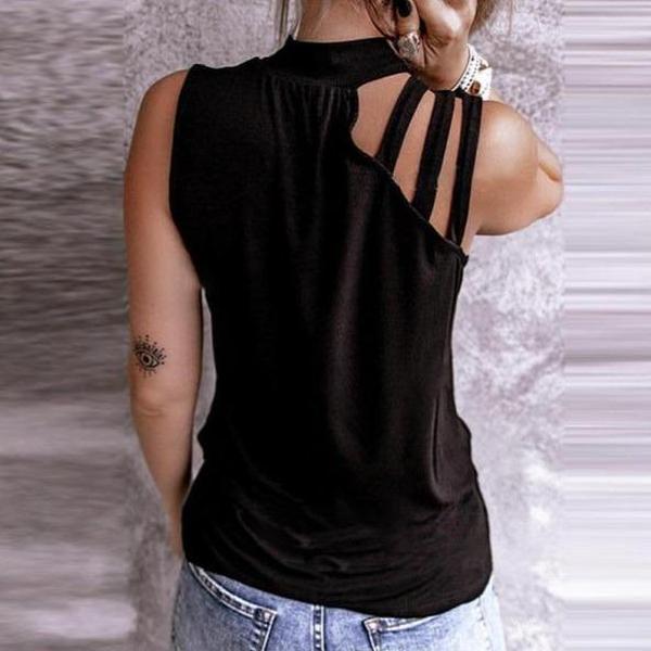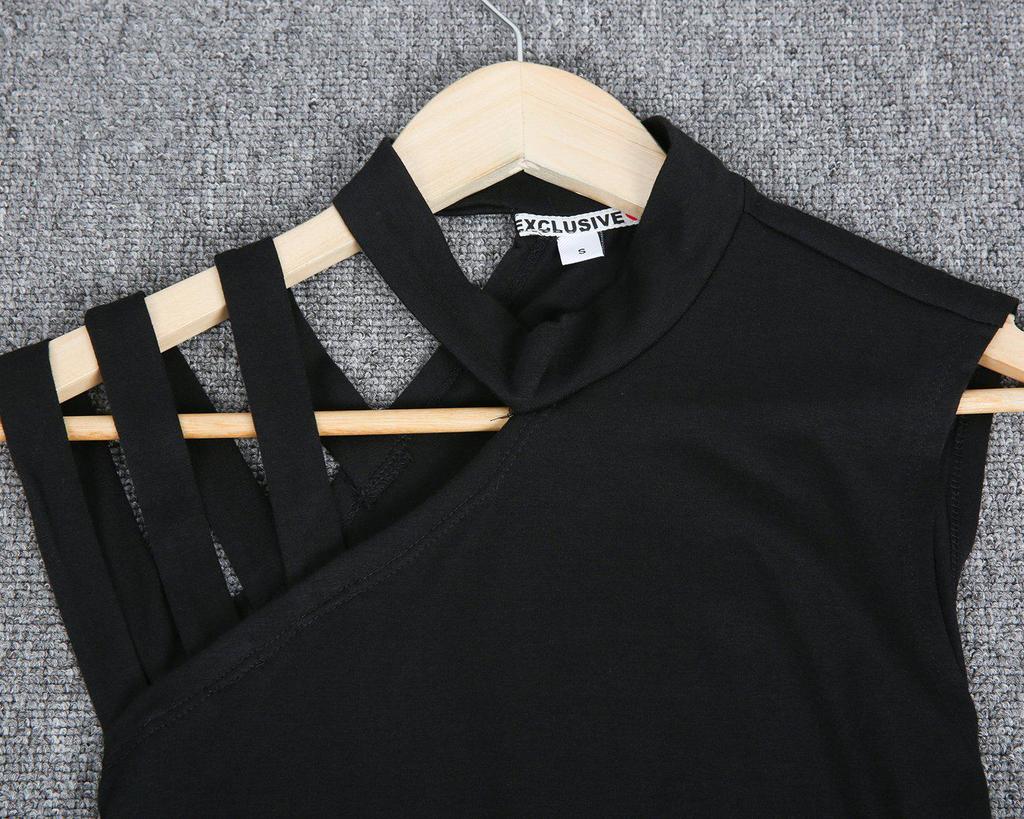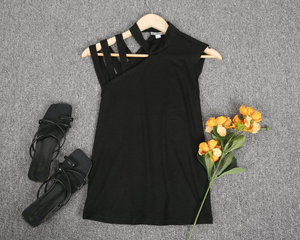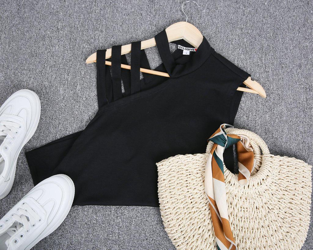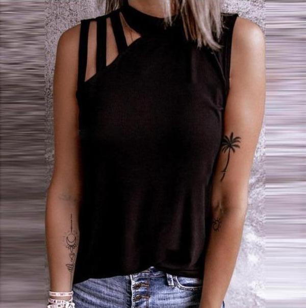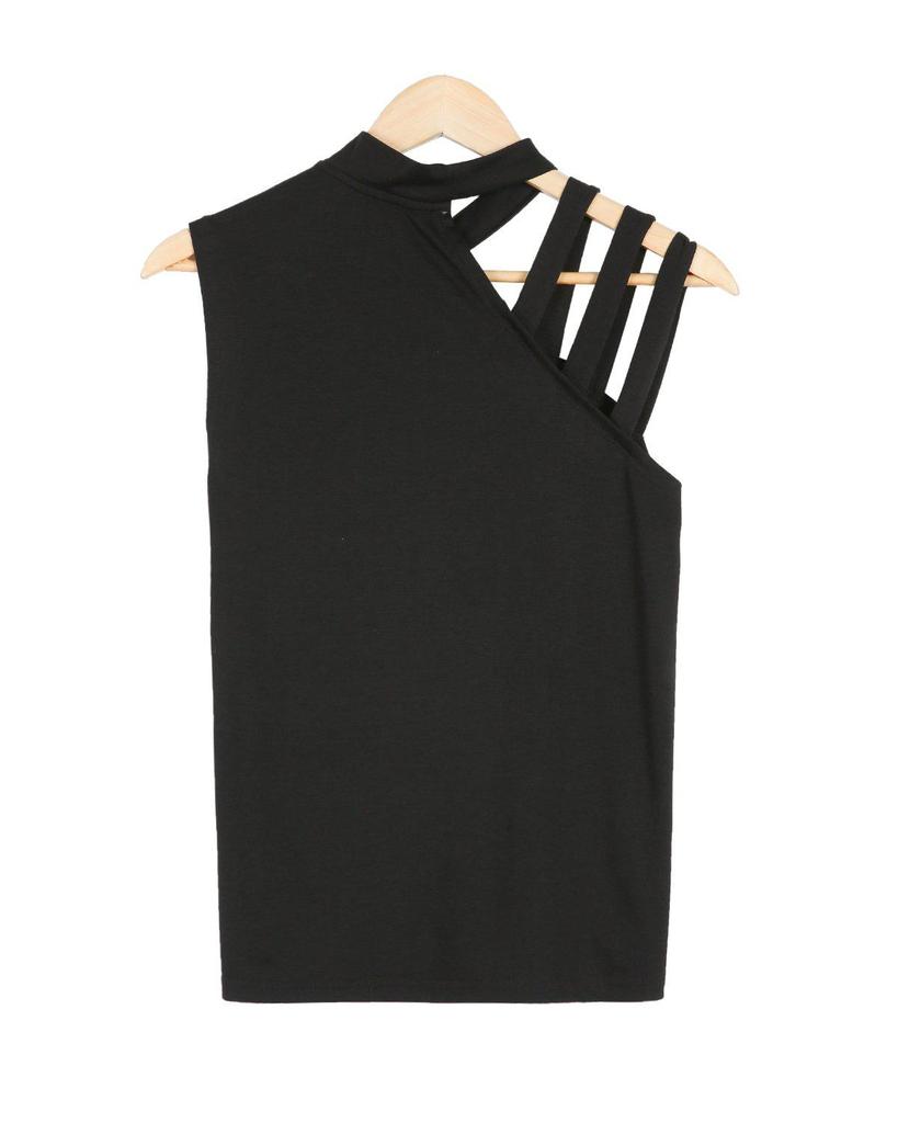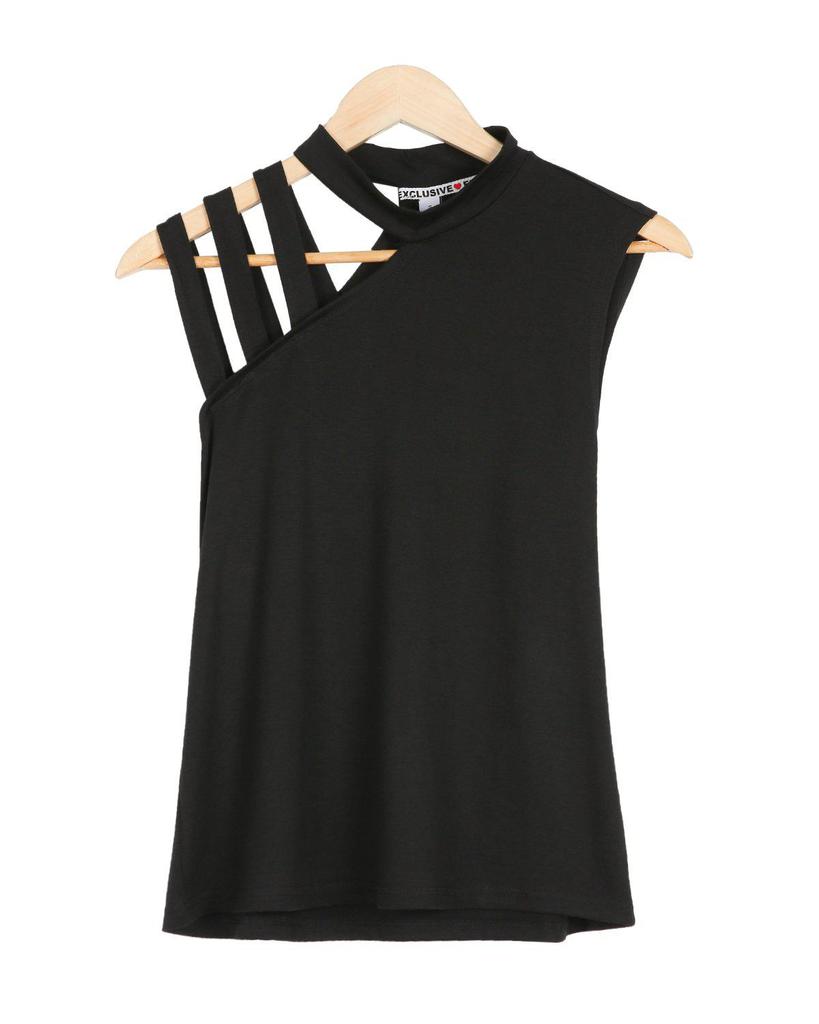 Who knew a simple black tank could be so… sexy? For rebels and good girls alike, this sleeveless top jazzes up jeans and more with a high neckline, sleeveless shoulders and cagey cutouts on one side. Don it for evening with bodycon skirt and add a jean jacket for daytime.