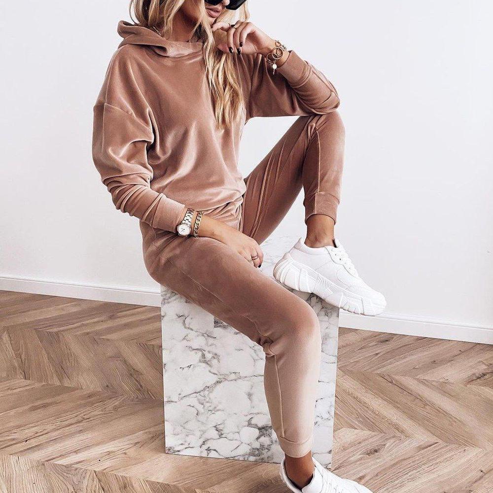 Attractive Plain Long Sleeve Hoodie Lounge Set