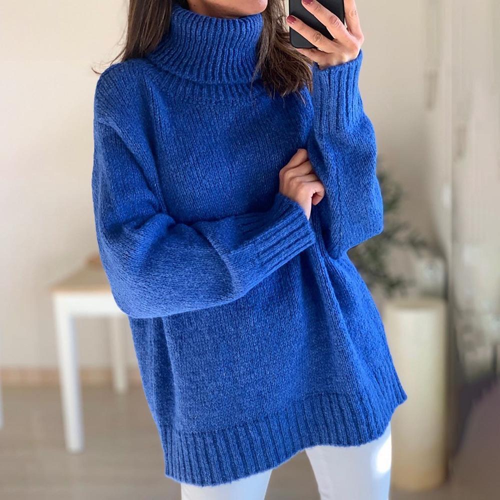 Bright Blue Ribbed Edge Long Sleeve Sweater