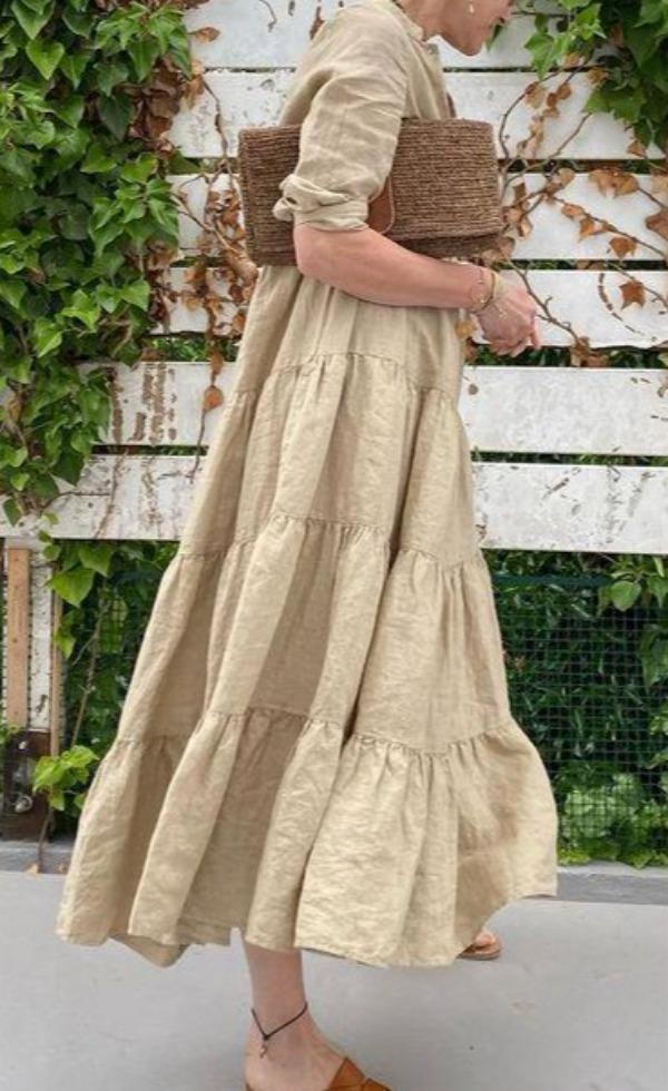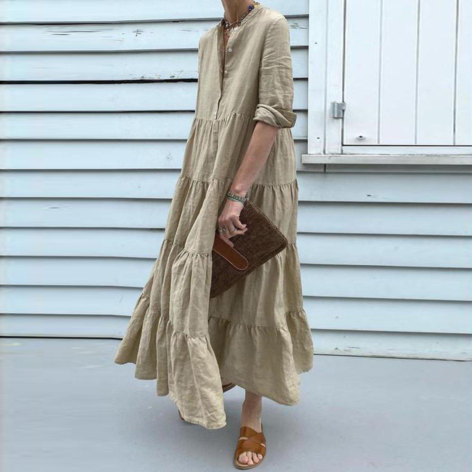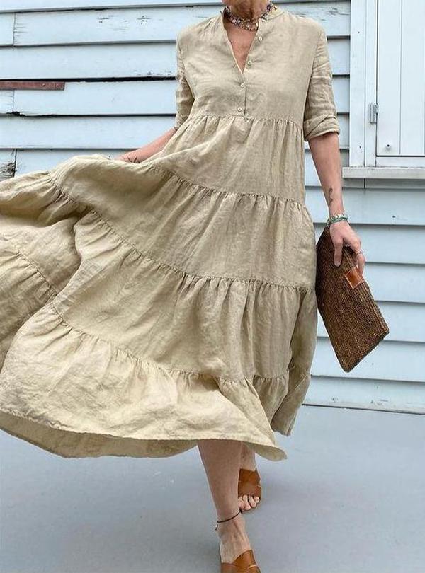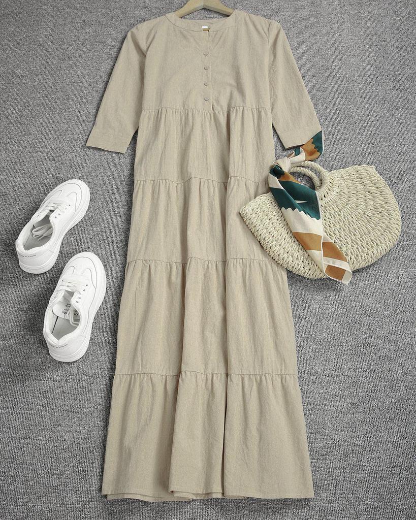 Casual Plain 3/4 Sleeve Maxi Dress