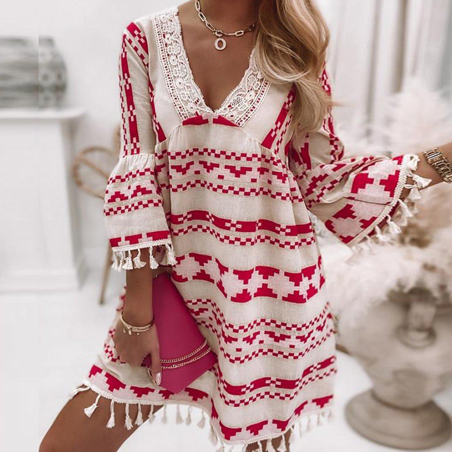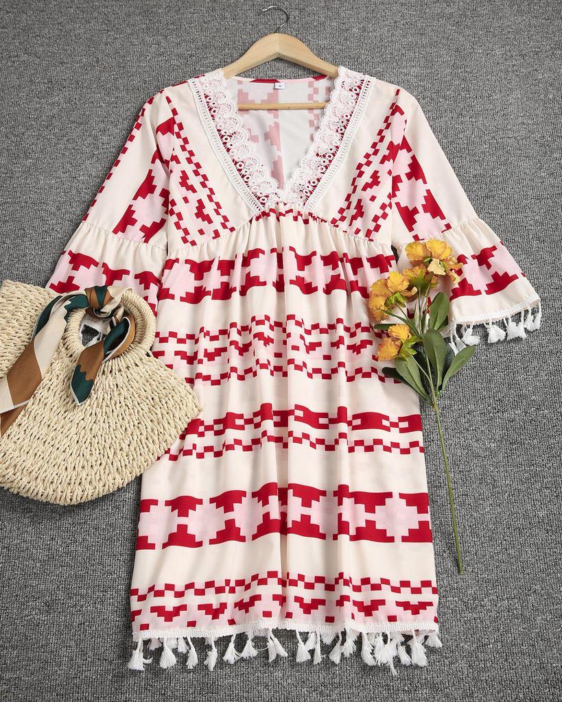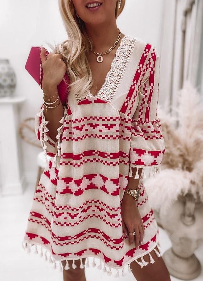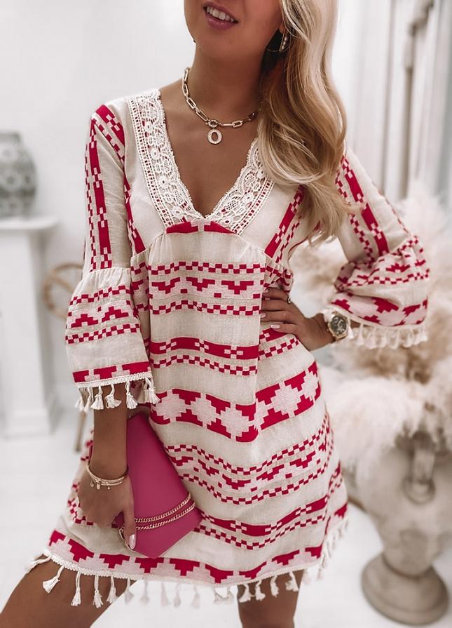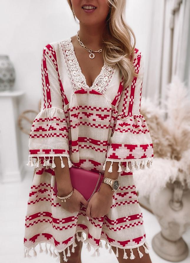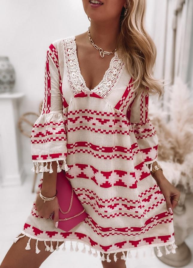 Chic Print 3/4 Sleeve Mini Dress