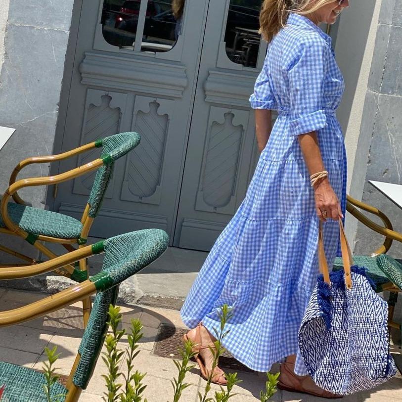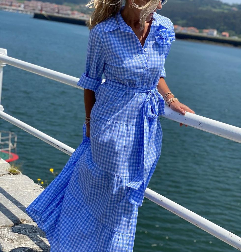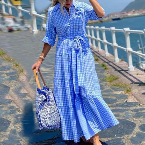 Classy Plaid Print Long Sleeve Maxi Dress With Belt