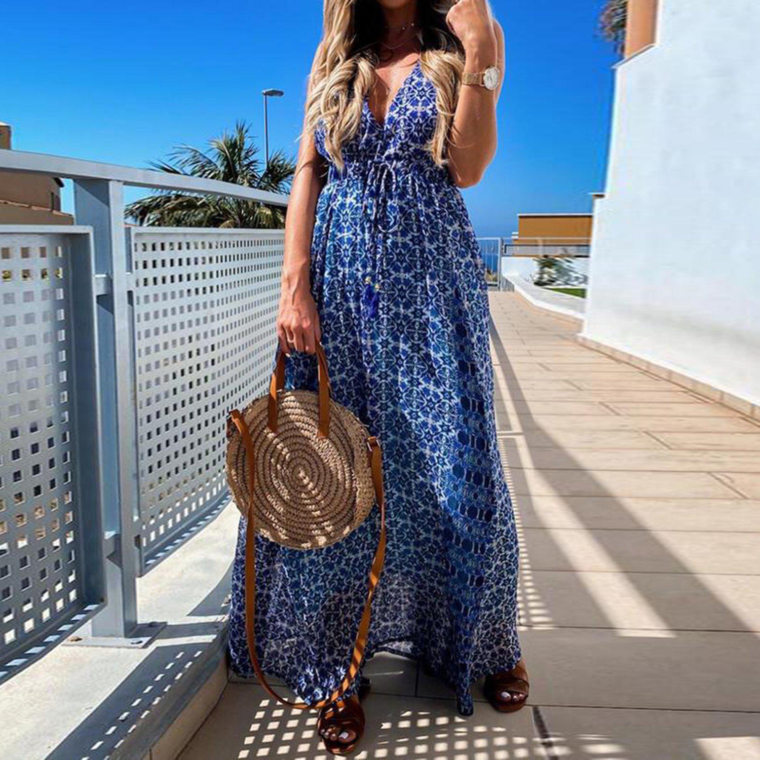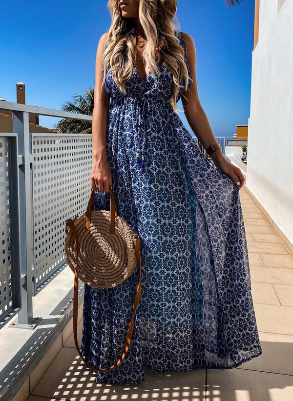 Elegant Print V-Neck Sleeveless Maxi Dress