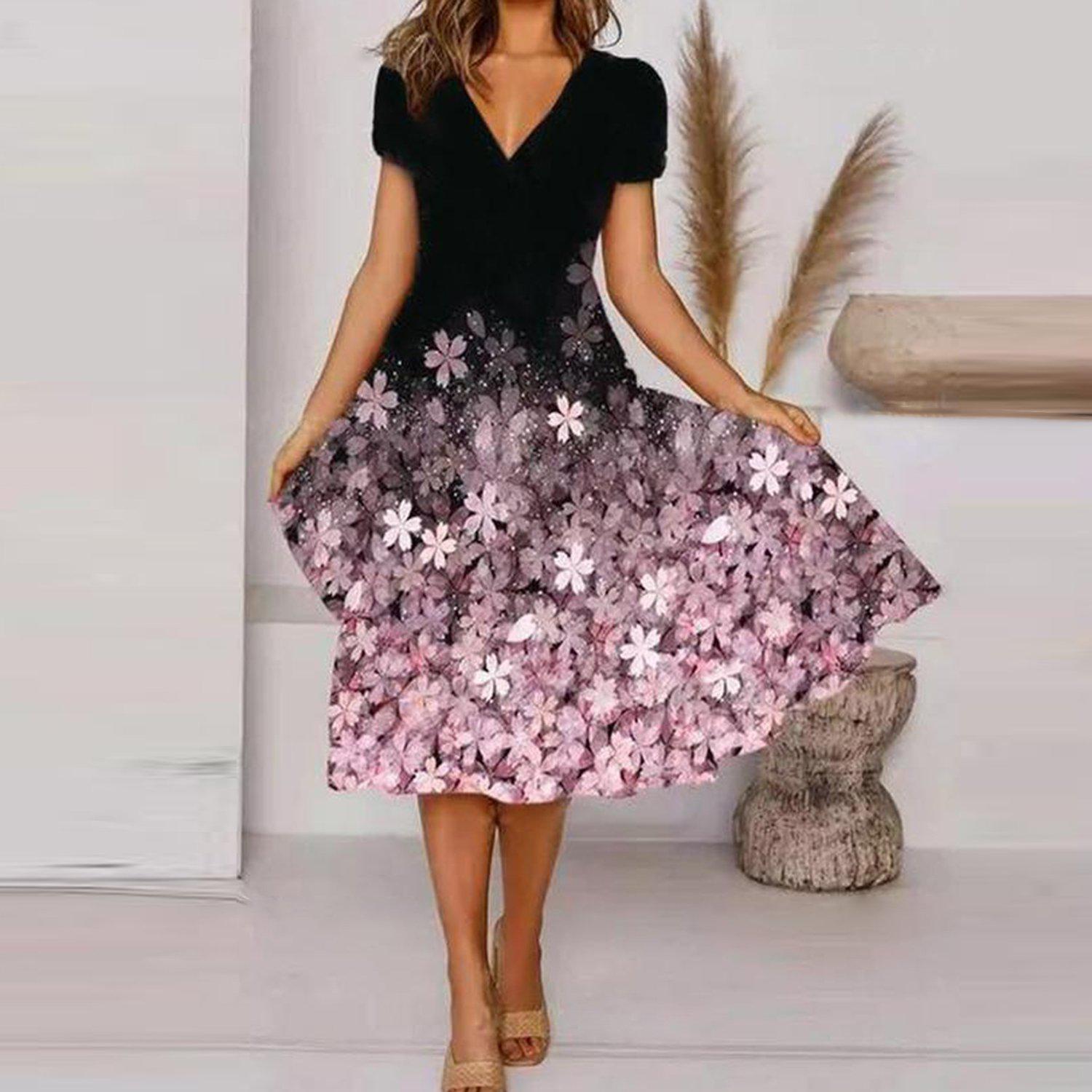 Take a twirl, you glamour girl! This short sleeve Flower Power dress is a total look you'll want to pose in for a snapshot to share. It creates a chic look with a V neck neckline and beautiful floral print on the flared A-line skirt.