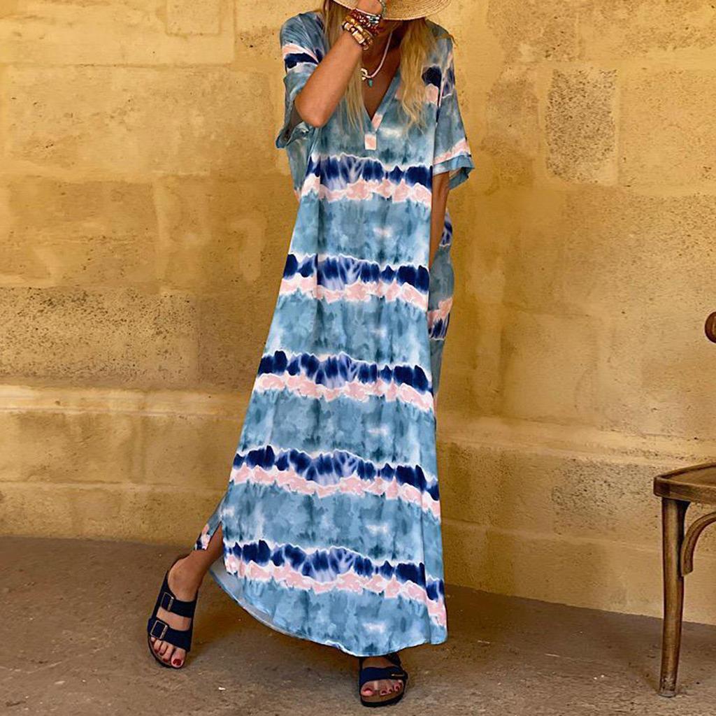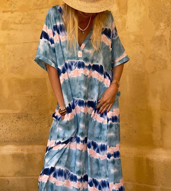Glamorous Tie Dye Print 3/4 Sleeve Maxi Dress