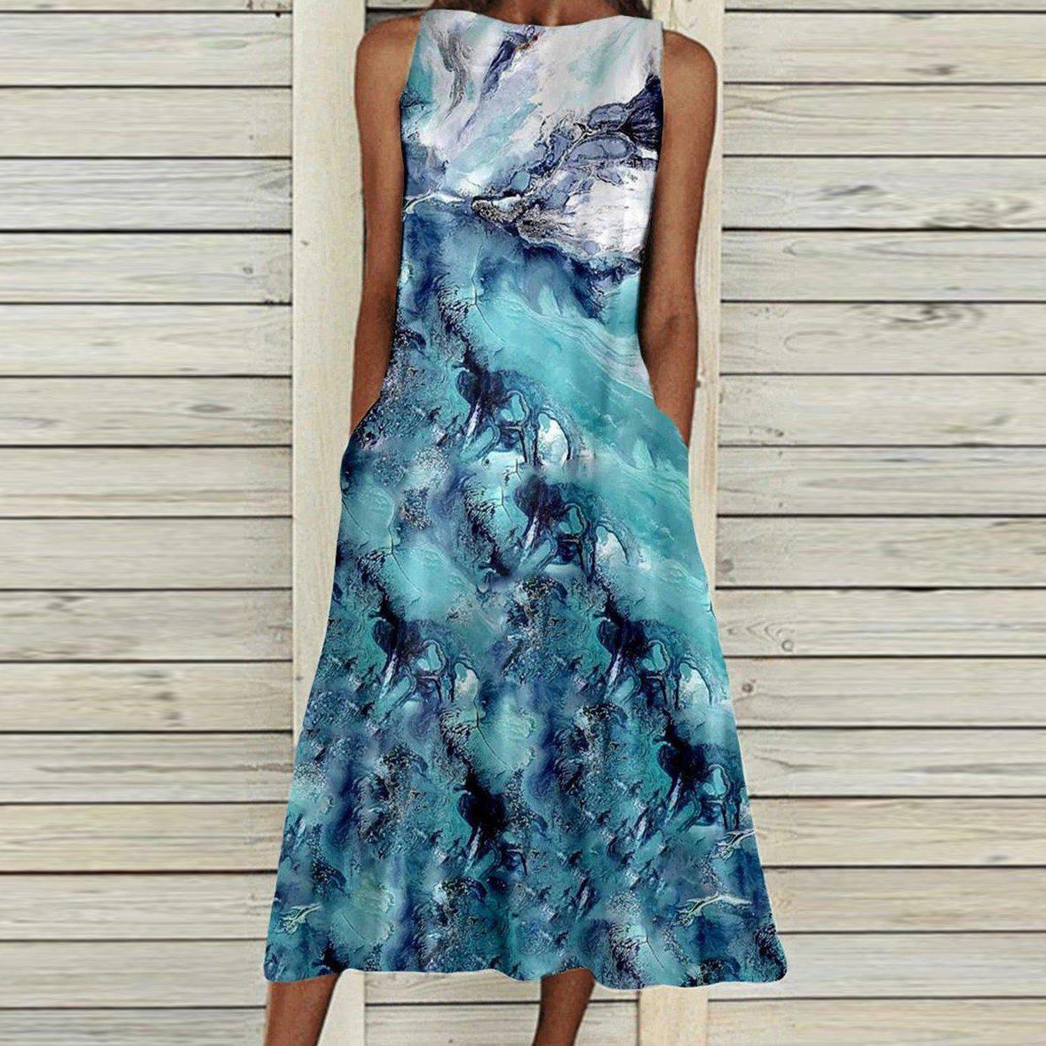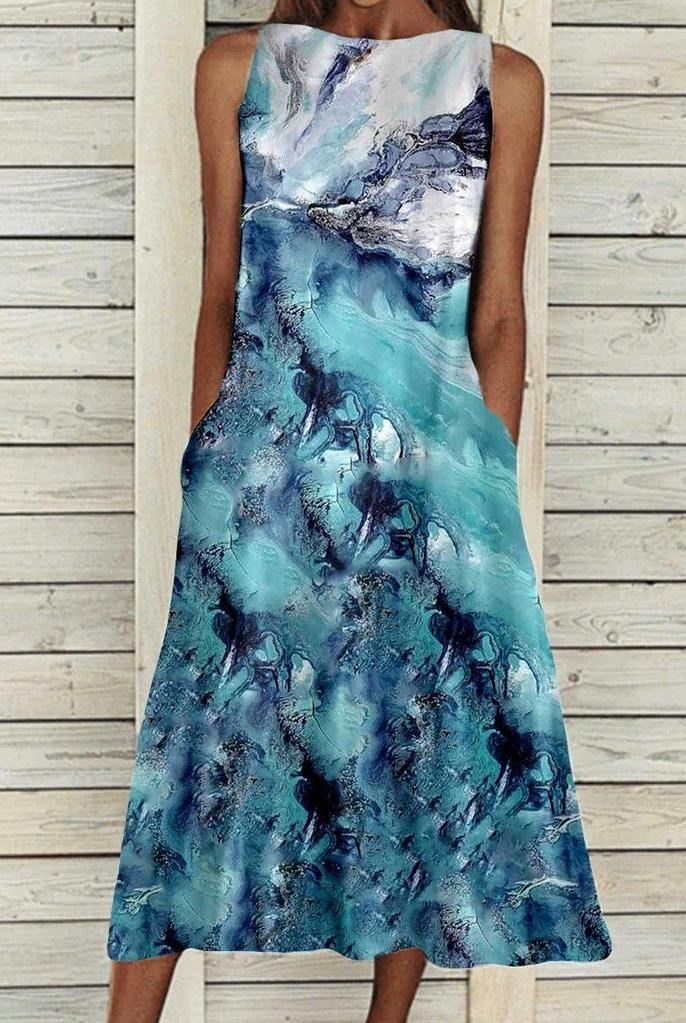 Groovy Print Sleeveless Midi Dress