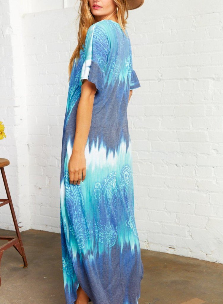 Groovy Tie Dye Print Short Sleeve Maxi Dress