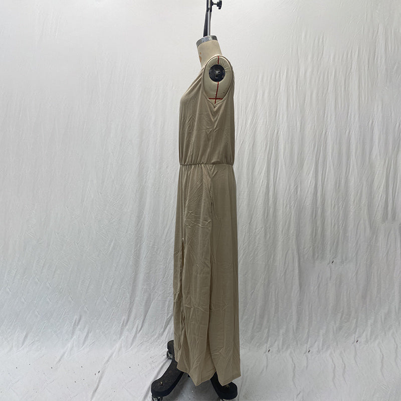 This elegant High Waist Split Maxi Long Dress features a flattering high waist design and convenient pockets. The split design adds a touch of sophistication while the pockets offer practicality. Perfect for any occasion, this dress is both stylish and functional.