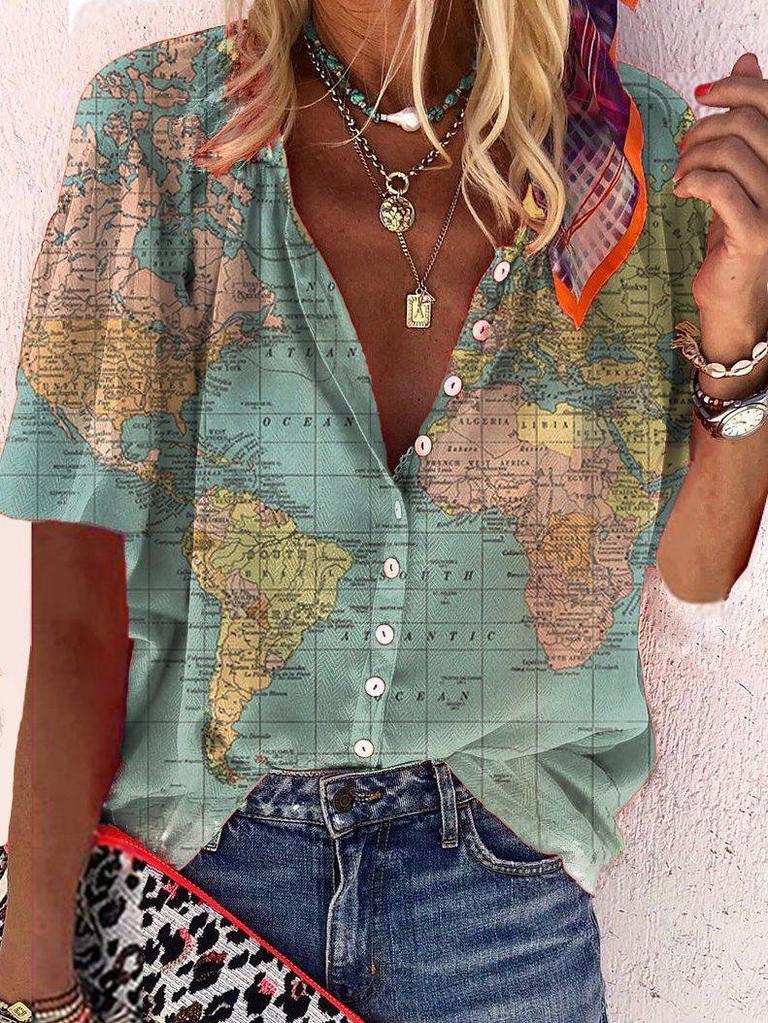 How Worldly Globe Print Shirt