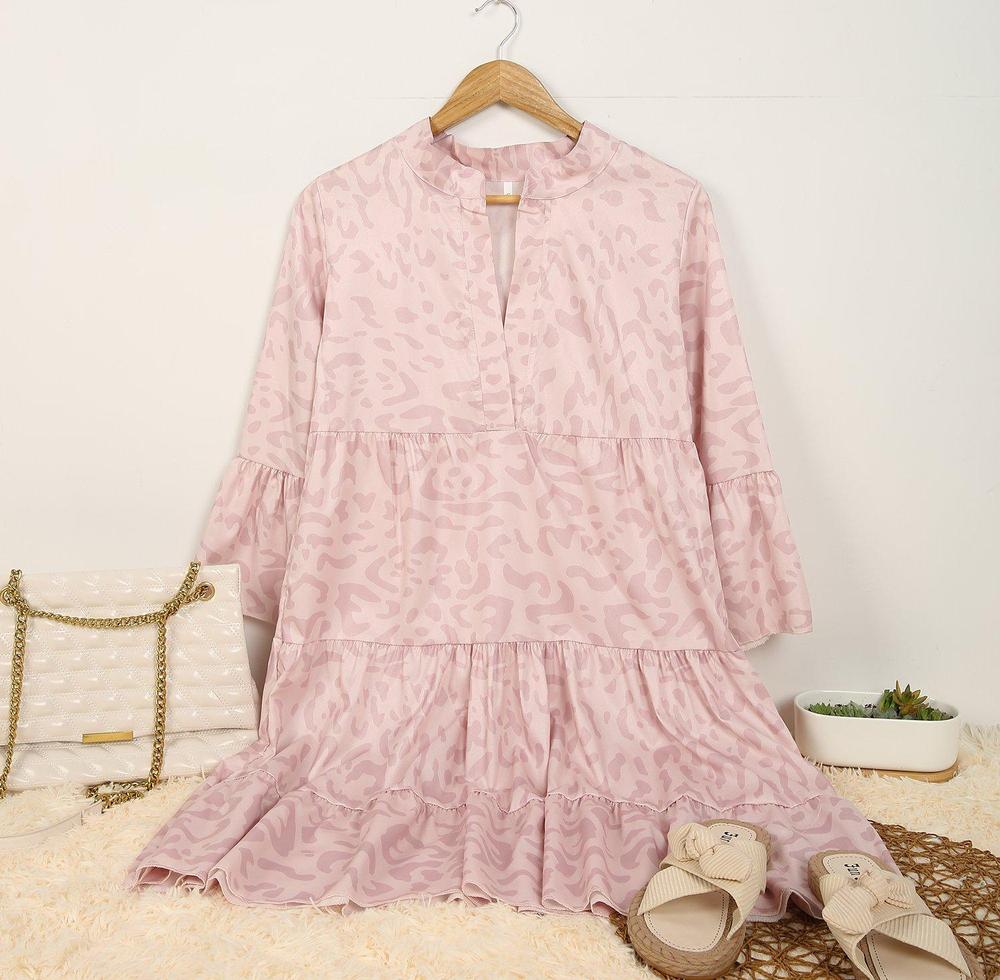 We’re wild about this animal-print dress that has a fierce leopard spots…yet still looks adorable. Blush pink crepe, tonal spots, bell sleeves and ruffled tiers make it a sweet way to wear the on-trend print. The dress is one of our favorite pieces for its easy, effortless beauty. Slip it on with bow-adorned flats.