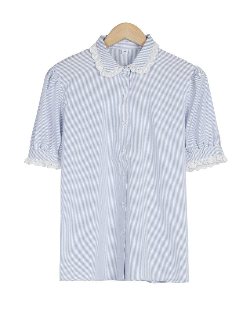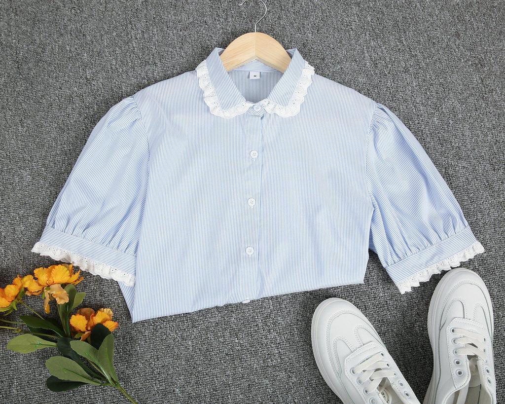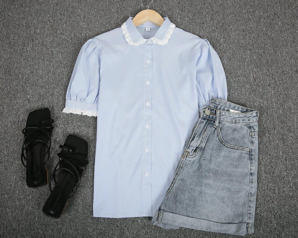 Ladylike Lace Cuff Short Sleeve Shirt