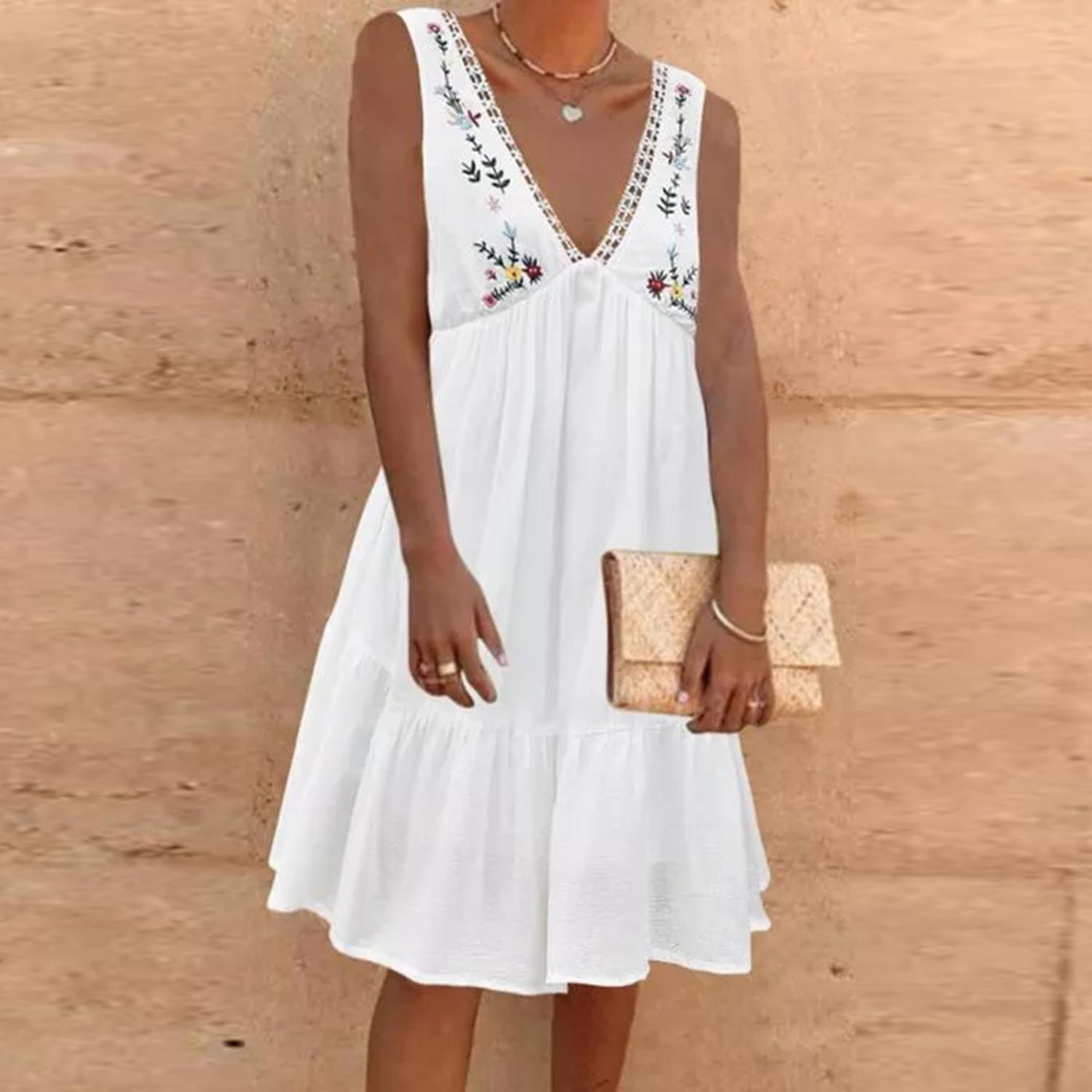 Ladylike Print V-Neck Sleeveless Mini Dress