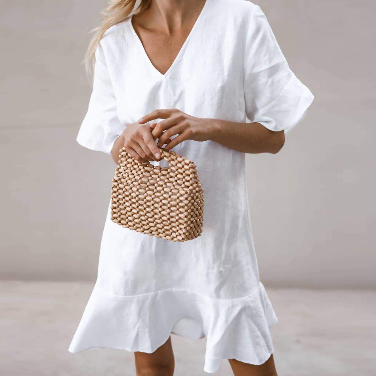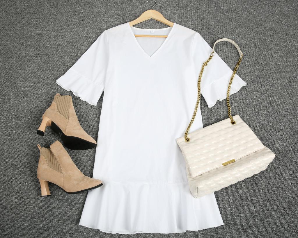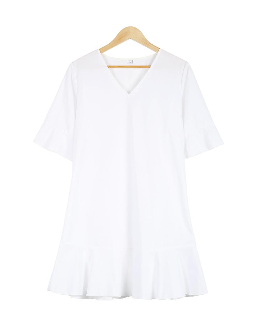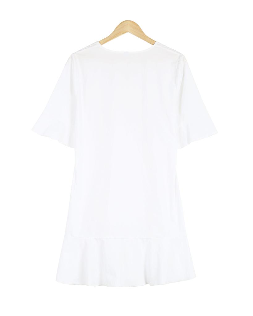 Ladylike White Plain Ruffle Cuff And Hem Short Sleeve Mini Dress