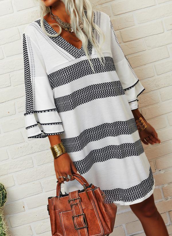Dance like no one is watching! Enhance your style with a stunning long sleeve top that brings you back to the retro era. A blend of rayon and elastane creates a relaxed fit with 3/4 length sleeves and a V-neckline to showcase a striped print in a A-line silhouette.