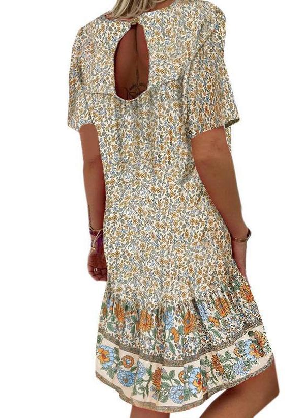 We’re call on spring’s florals to brighten our mood and our wardrobe. Ditsy flowers populate this vintage-vibe mini dress finished with a retro border print of enlarged blossoms. Cut in a shift silhouette, the dress looks especially cute with a chunky, cropped cardigan or denim jacket, but you’ll want to remove the topper in the day to flaunt the unexpected and stylish cutout at the back.