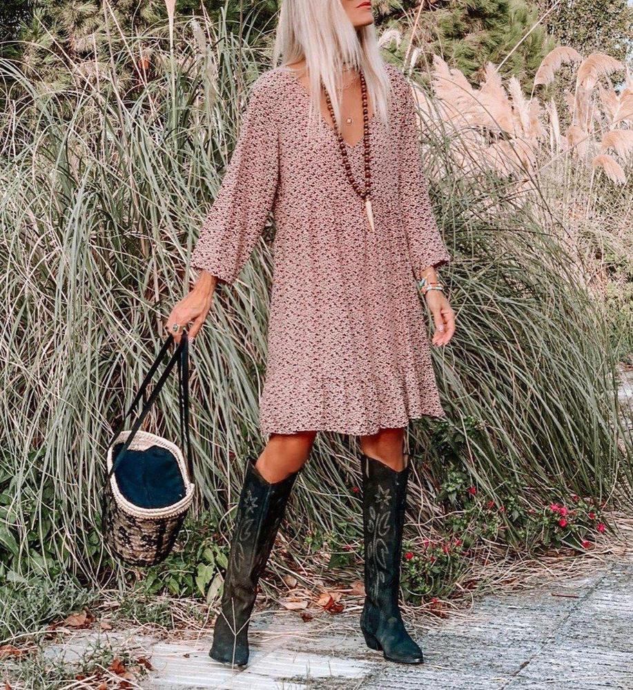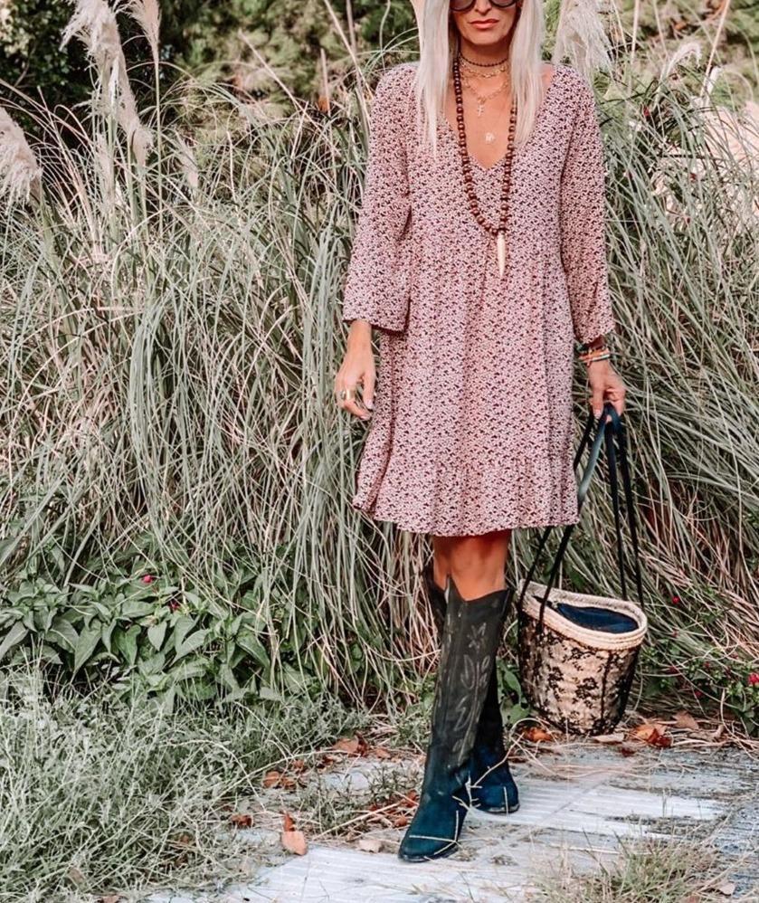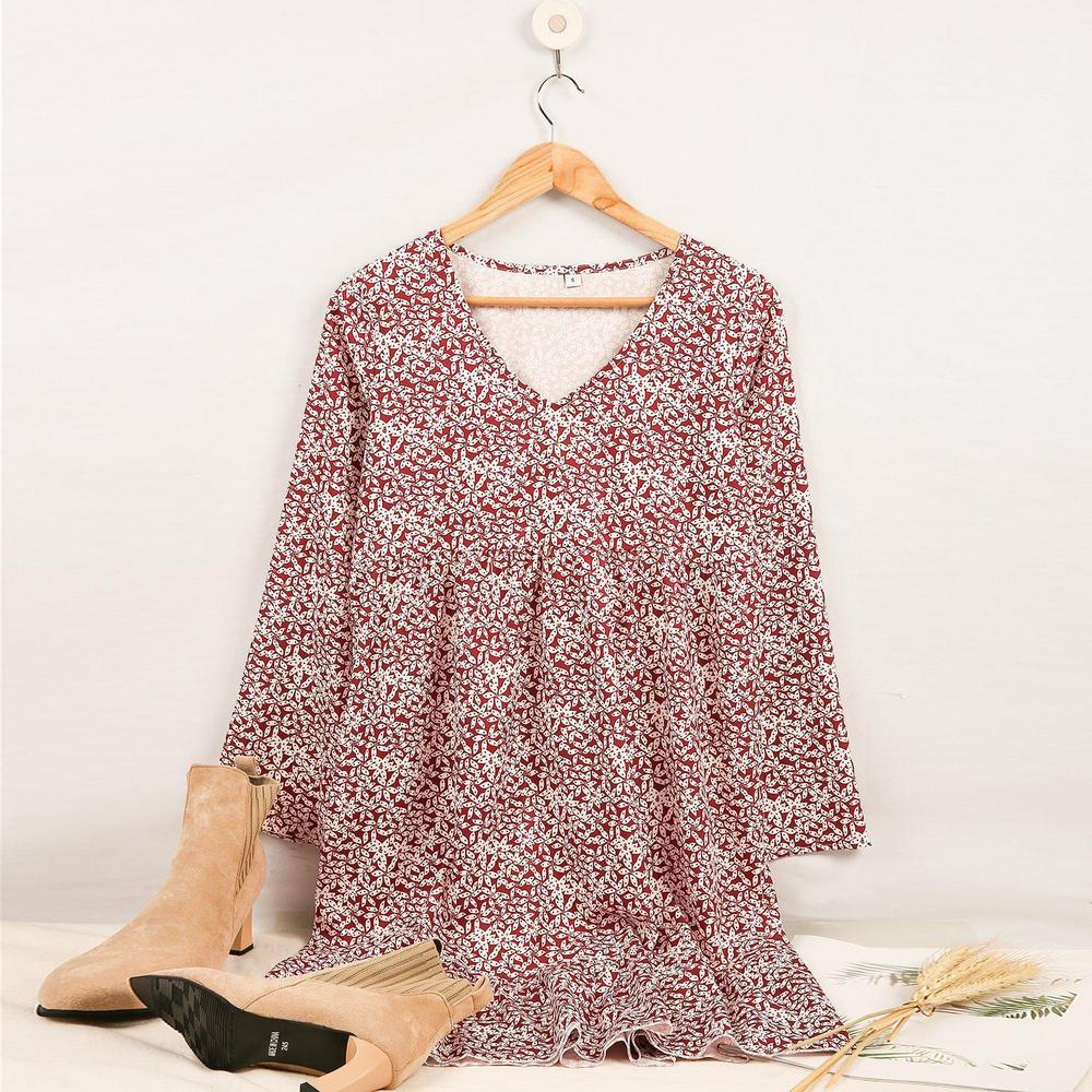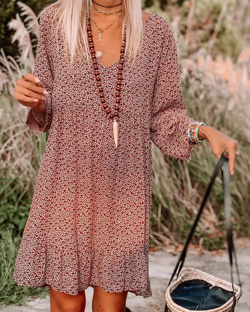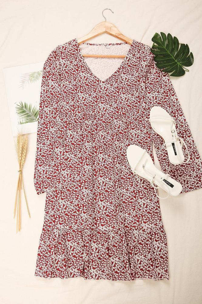 Hold tight to the memories you make in this cute, breezy playful. For summer vacation or autumn apple picking, this breathable, playful dress is a smart and simple option. Styled with a V-neckline, wide bracelet sleeves and a ruffled hem, you can slip it on and look pulled together instantly. Best all, the dress goes with everything from sky-high wedges to cowboy boots to classic sneakers