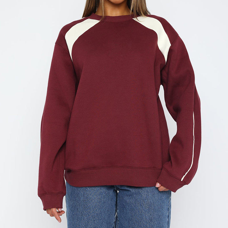 Round Neck Long Sleeve Contrast Color Sweatshirt