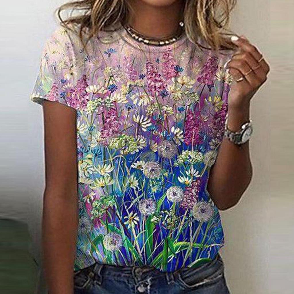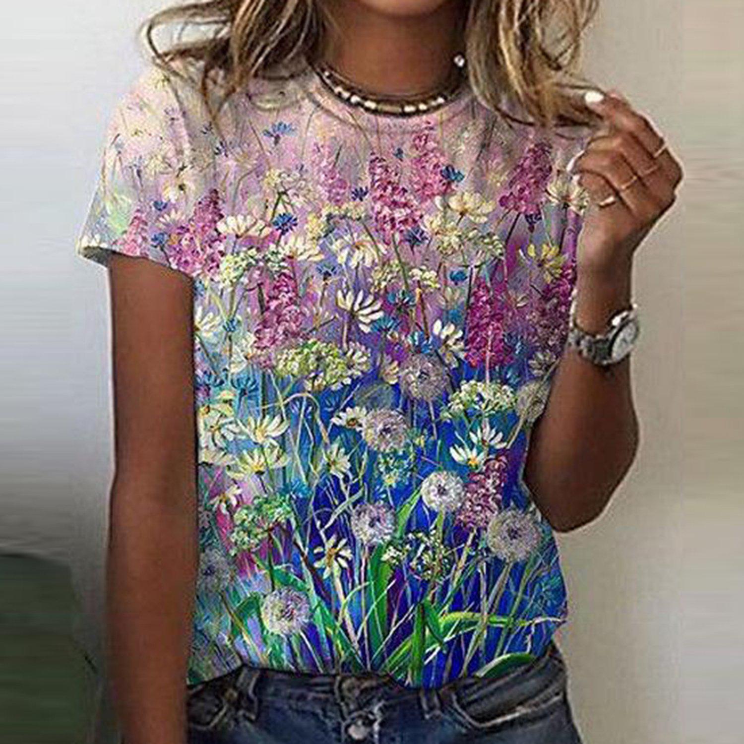 Round Neck Print Casual Top