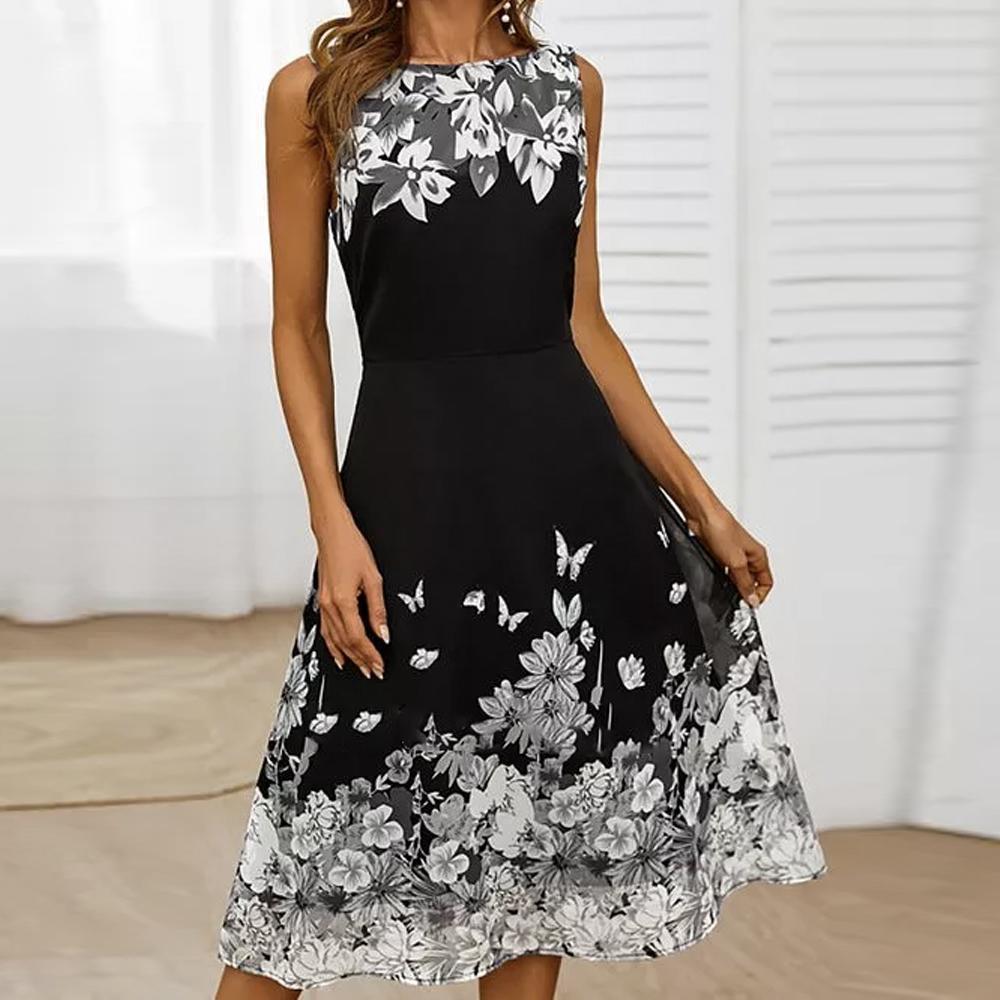 Love Audrey Hepburn’s iconic movie style? Then you’ll adore the timeless glamour of our Shall We Dance Dress. Designed in a modest midi silhouette, the cocktail dress has a whimsical skirt printed with white floral and butterflies. It’s fashioned in a flattering fit and flare silhouette with a bateau neckline and sleeveless shoulders. Flaunt the dress with a hard-case clutch and simple black pumps.
