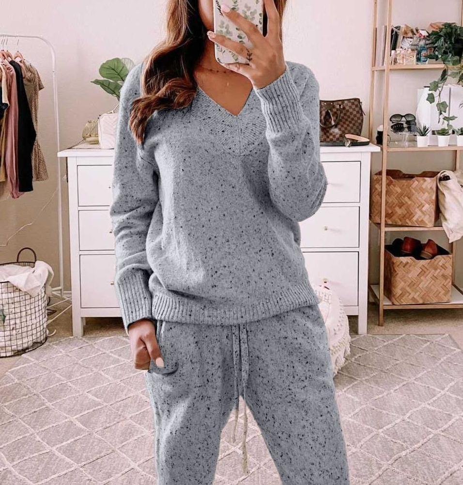 Our newest loungewear isn’t just comfortable, it’s stylish. Be ready before you can say “go” with these coordinating speckled knits. The cozy staples fit together like puzzle pieces but look fabulous apart, too. The sweater is designed with a V-neckline and ribbed trim and the fitted joggers have an adjustable drawstring waist and slant pockets. Two great pieces for one perfect set.
