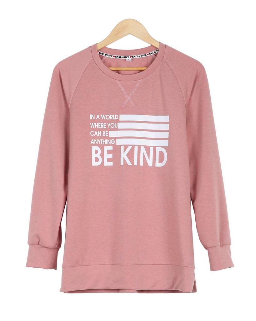 Sweet Pink Crew Neck Long Sleeve Sweatshirt