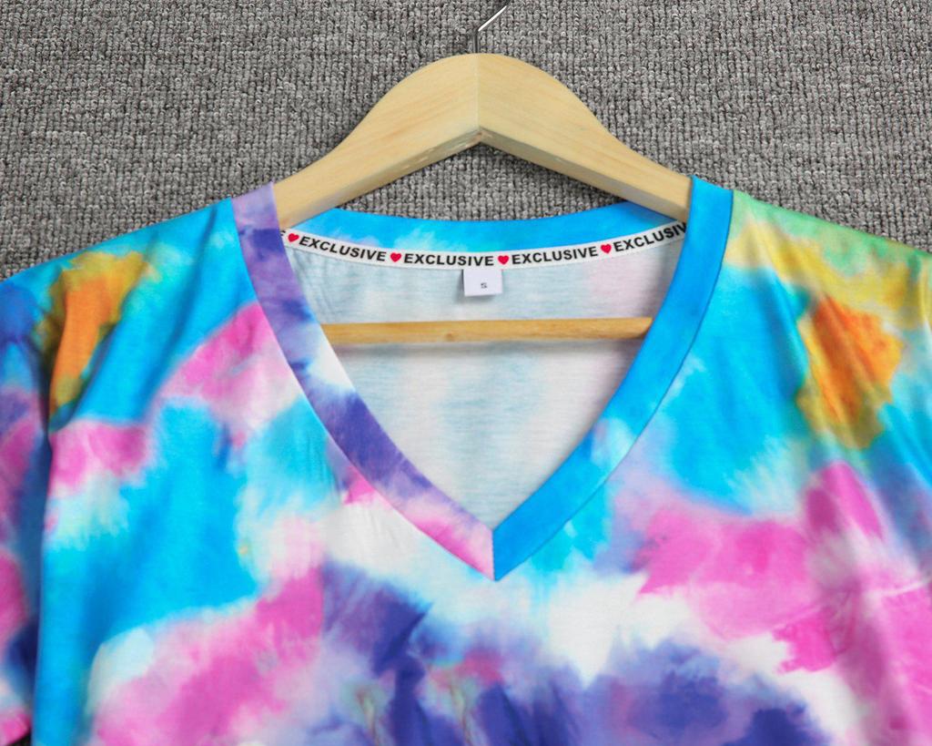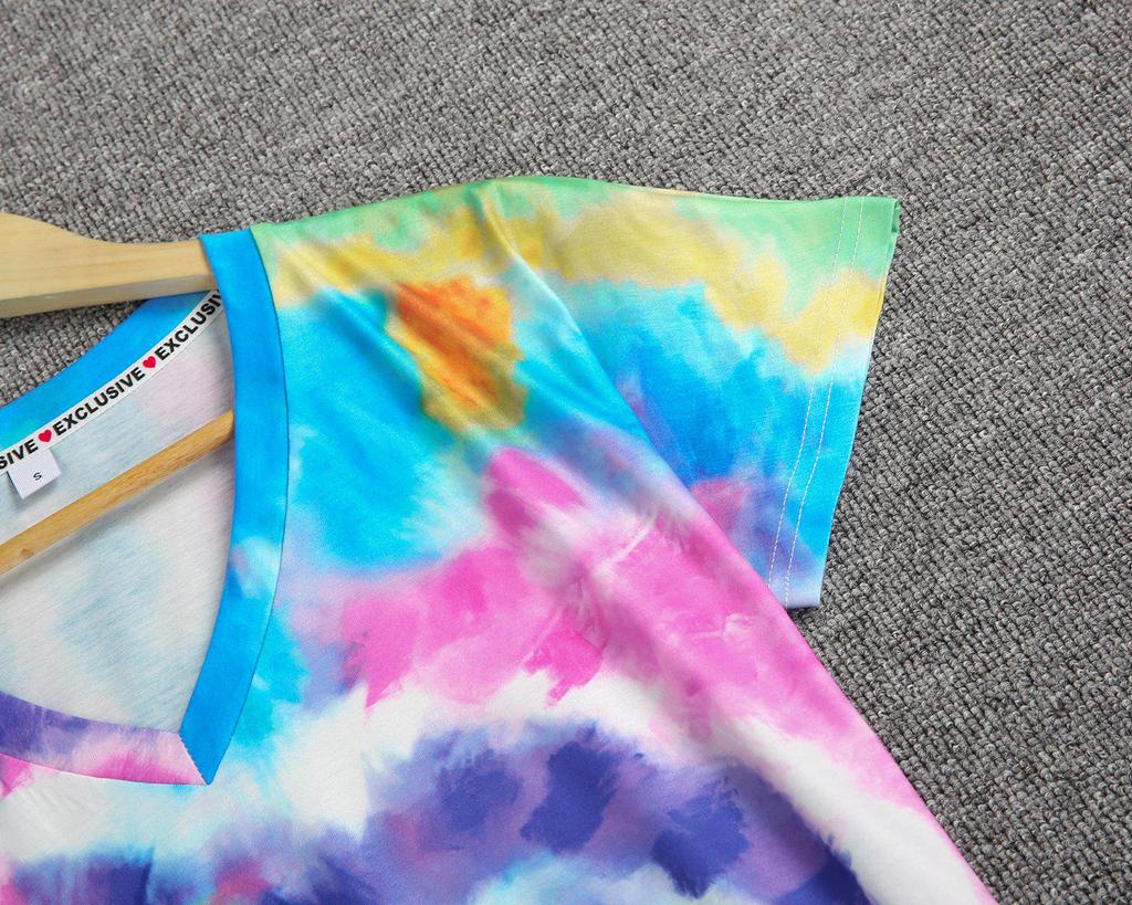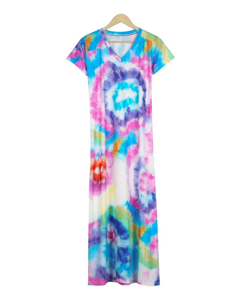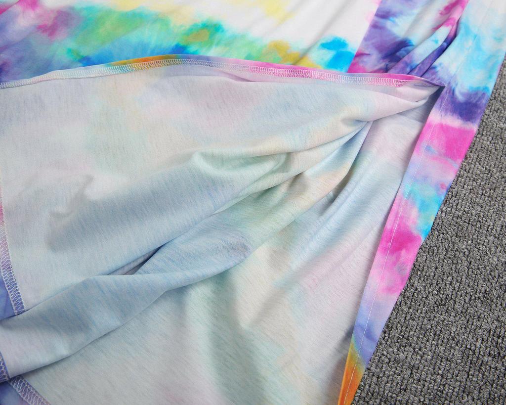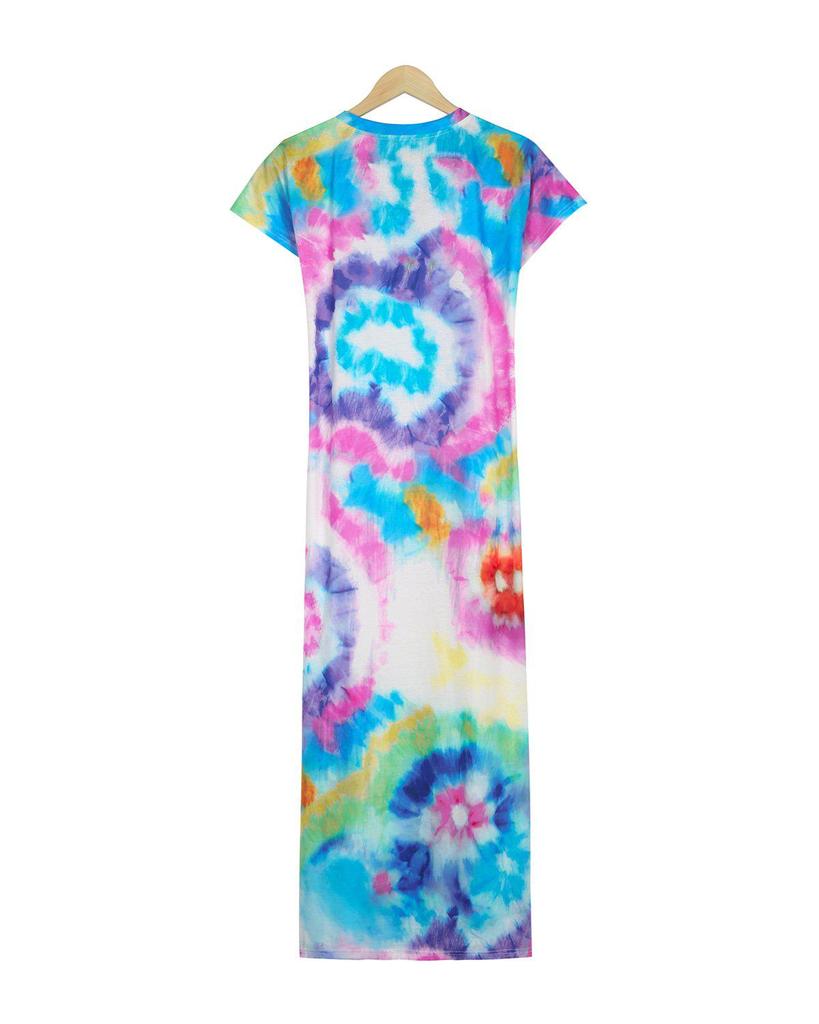 Trendy Tie Dye Print Thigh-High Side Slit Short Sleeve Maxi Dress