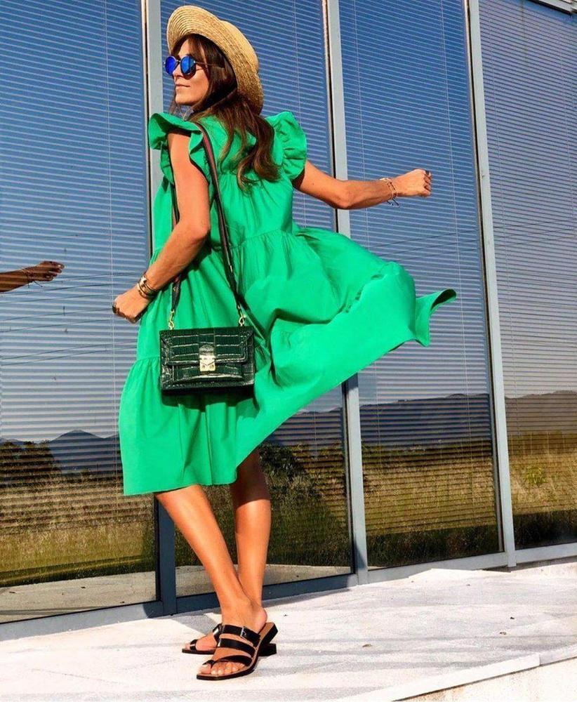 Summer was made for this dress offered in seven irresistible shades. Truly the style of the season, this billowy, tiered babydoll has a flirty fit that dances in the wind. Cut with a high, rounded neckline, the frock has fluttery short sleeves —yet another reason to gush over its cuteness.