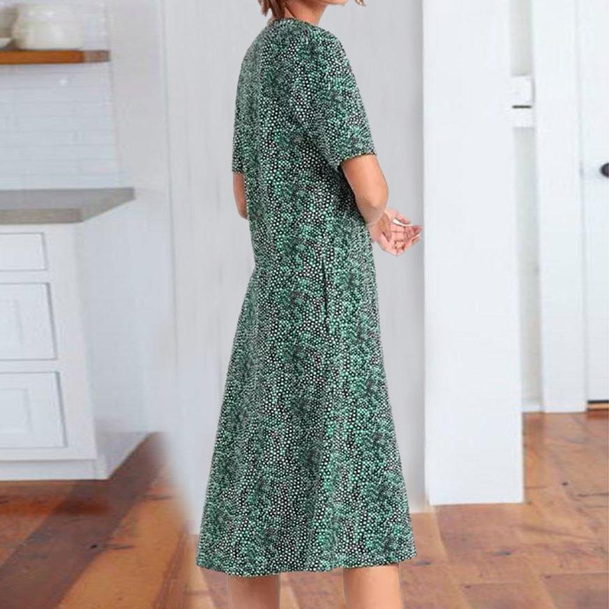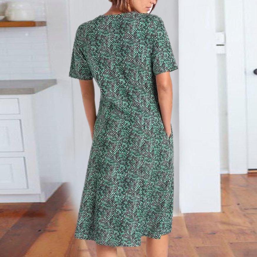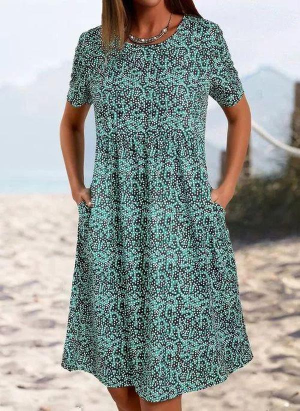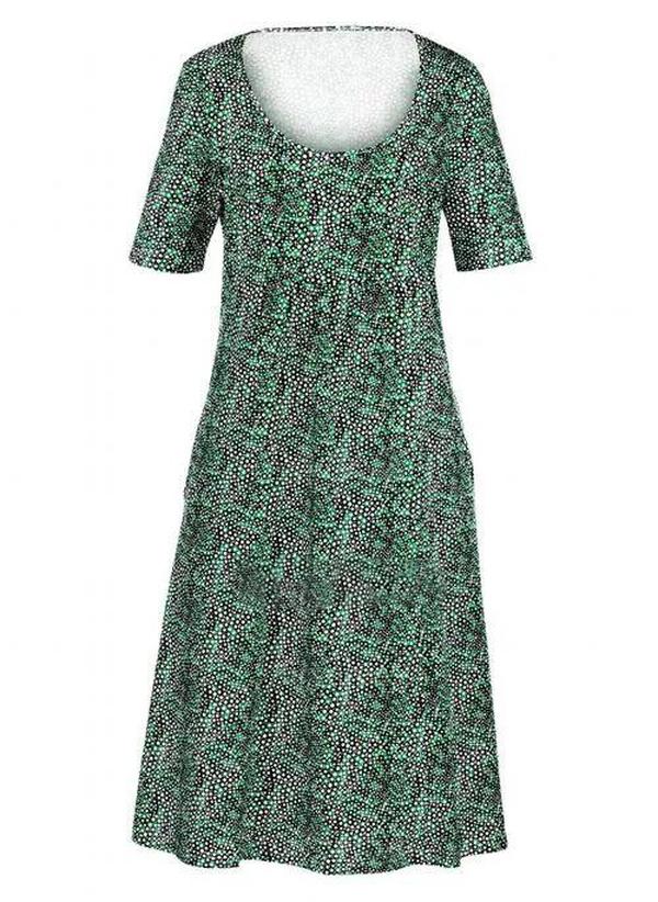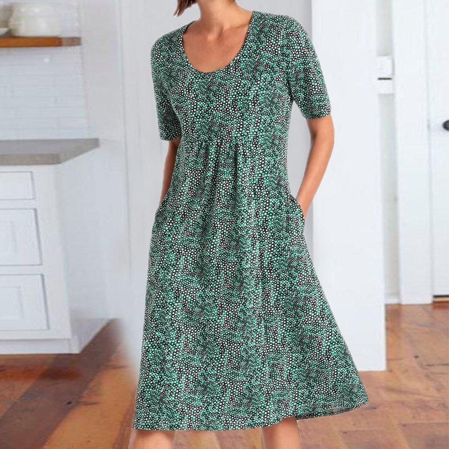 The animal print craze is nothing new, but this empire-waist dress with a color and print inspired by lizard skin is. The short-sleeve dress is patterned with dots that create a textured-like look and add eye-catching appeal to a simple dress you can count on for weekends and relaxed days at home. Still on the fence? You won’t be when you see the hand pockets!